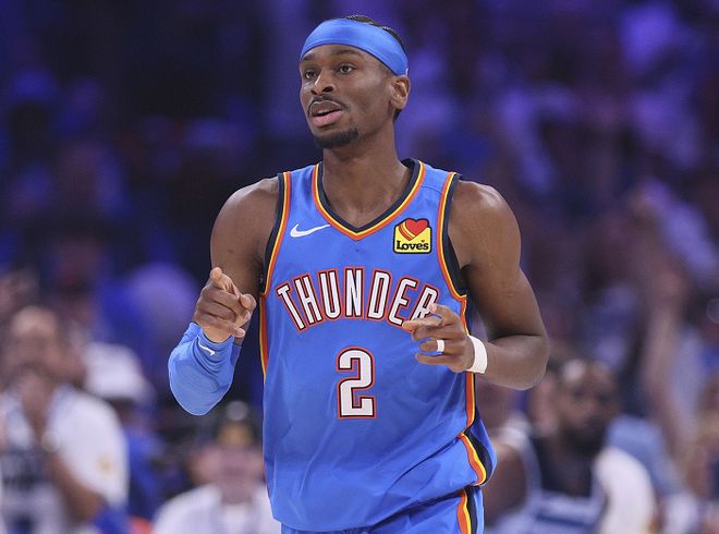说到得分王,就不得不提SGA。上赛季,SGA出战76场,场均轰下32.6分,力压字母哥(30.4分)和约基奇(29.6分)斩获常规赛得分王。SGA不擅长投三分,可中投和罚球是他的双重标志,这种得分方式稳定高效,让他拥有无与伦比的得分爆发力和稳定性。据统计,SGA已经连续74场比赛砍下20+,排在NBA历史第4位,仅次于大O(79场)、张伯伦(92场)和张伯伦(126场)。