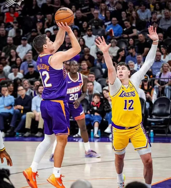 赛前ESPN给出的胜率预测,湖人55.8%,太阳44.2%,没人看好这支残阵太阳。太阳首发是吉莱斯皮、格林、邓恩、奥尼尔、马威(威廉姆斯),全是轮换边缘的角色球员;湖人则派出东契奇、拉维亚、斯玛特、詹姆斯、艾顿的豪华首发,刚从魔术手里丢掉西部第五,这场本是止颓的绝佳机会。